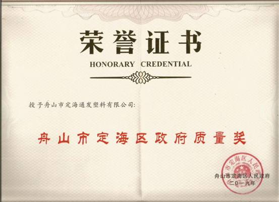 热烈祝贺!我公司获2018年度定海区政府质量...
