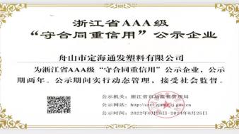 热烈祝贺我公司再次获得浙江省AAA级守合同...